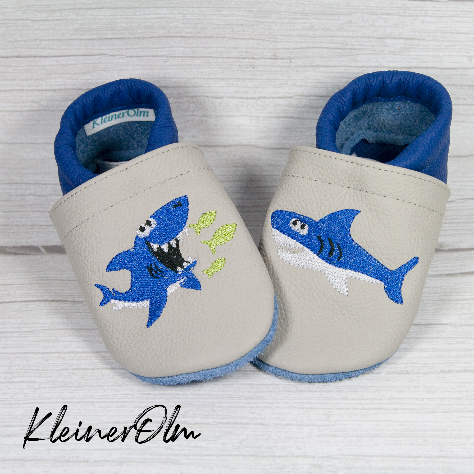 Mit coolen Haien bestickt.